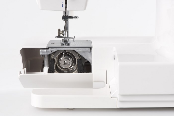 La sua forma compatta poi occupa poco spazio e permette di cucire ovunque con il minimo ingombro.