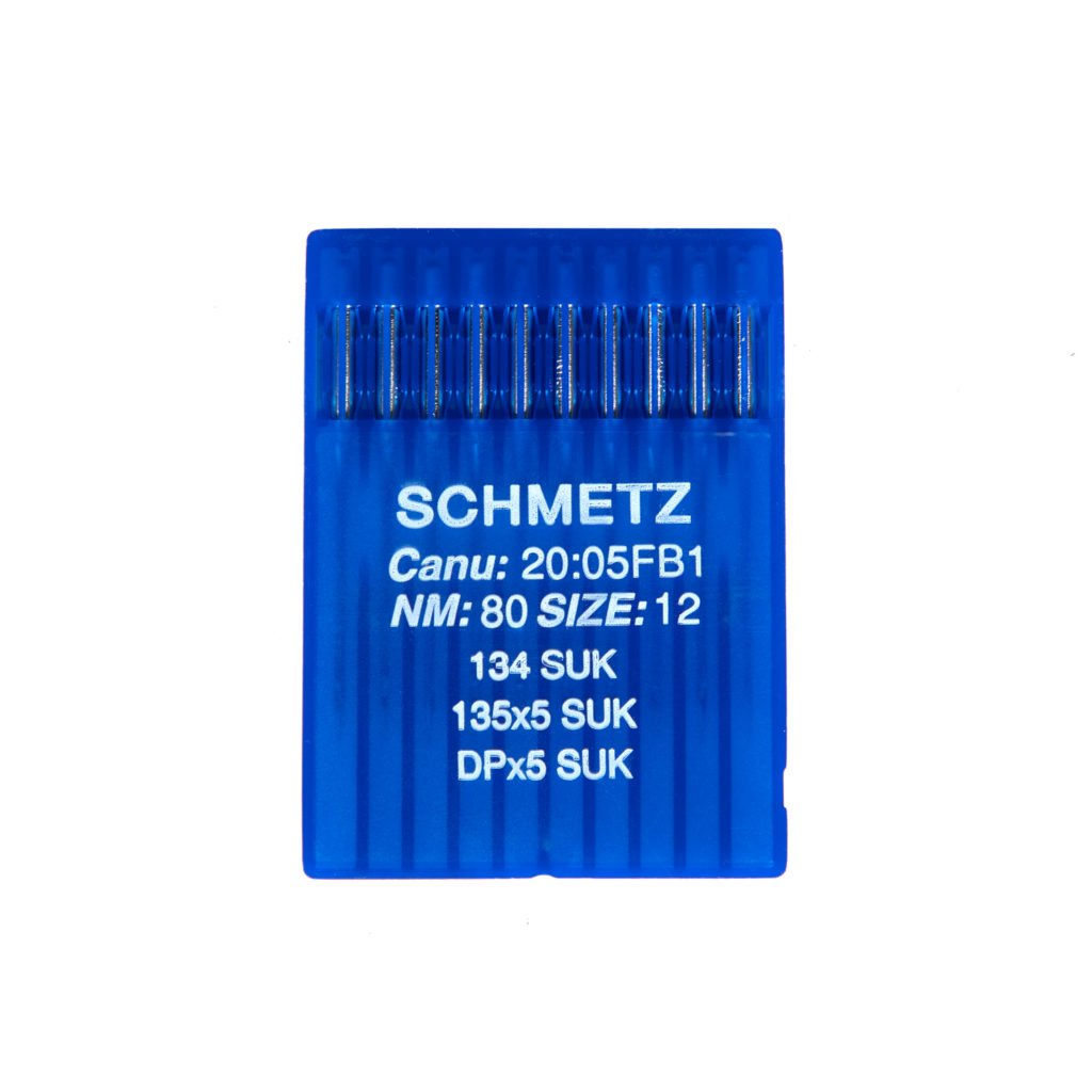 Aghi industriali Schmetz 134 SUK con punta a sfera media per tessuti elasticizzati e maglieria. Misure disponibili 60–65–70–80–90.