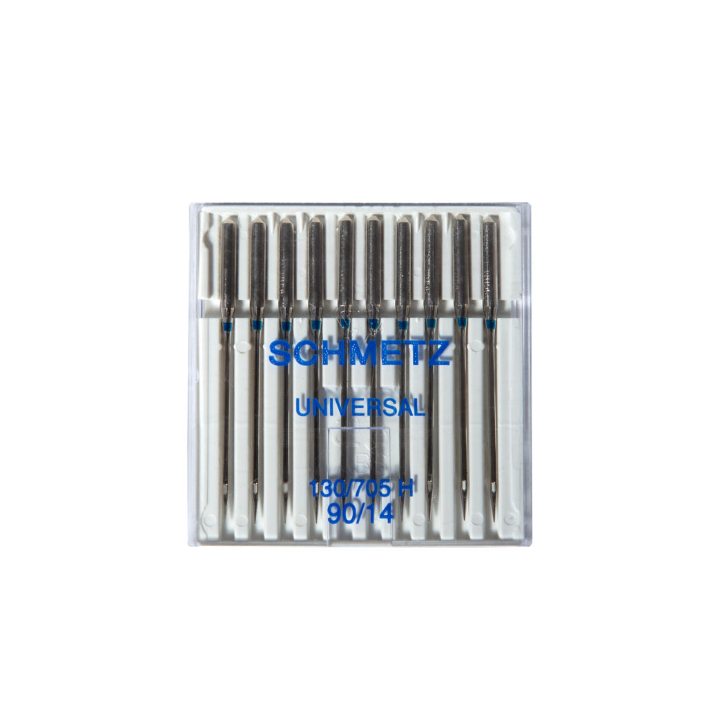 Aghi universali SCHMETZ per macchine da cucire famiglia, ideali per cotone, tessuti misti e cucito domestico preciso e affidabile.