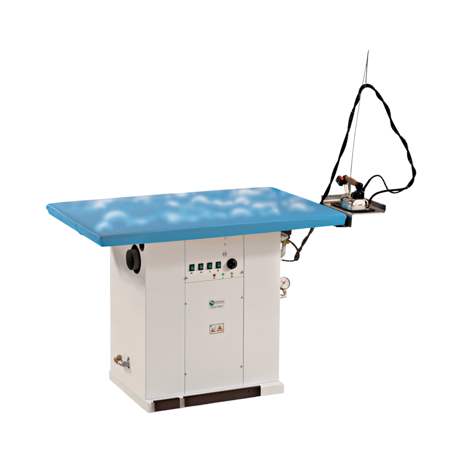- Piano riscaldato e aspirante: Assicura una stiratura uniforme e la rimozione efficace dell’umidità dai tessuti.