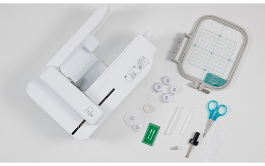 Imposta semplicemente l’unità ricamo e il telaio, seleziona il ricamo ed inizia a lavorare. Altri telai sono disponibili separatamente.