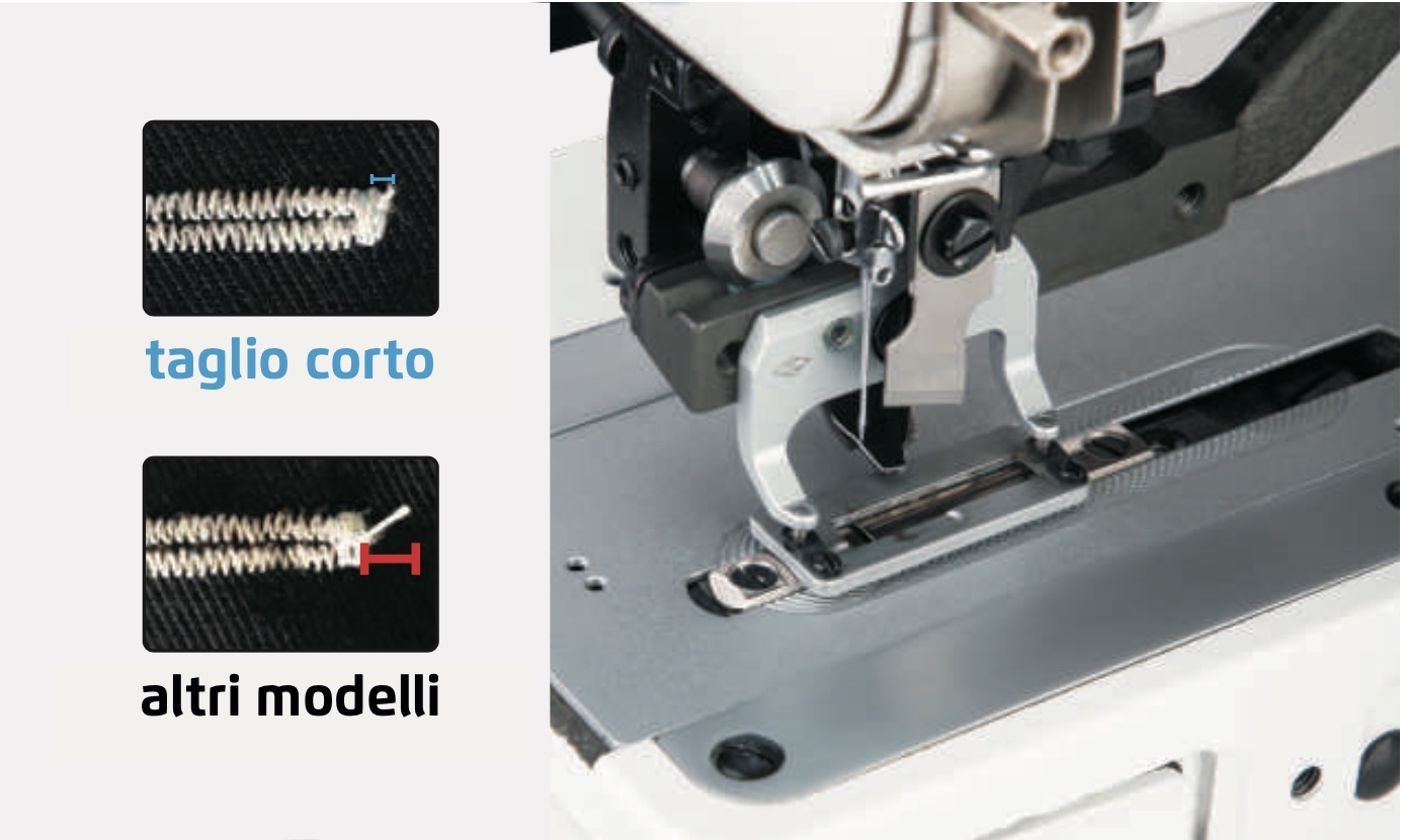 - Multitaglio e cucitura continua, che permette di realizzare asole lunghe o in serie senza sostituire la lama e senza pause.