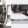 Il motore passo-passo integrato controlla con precisione il movimento dell’ago, il trasporto del tessuto e il coltello per il taglio dell’asola, offrendo una cucitura più precisa, silenziosa e con vibrazioni ridotte rispetto ai sistemi tradizionali.