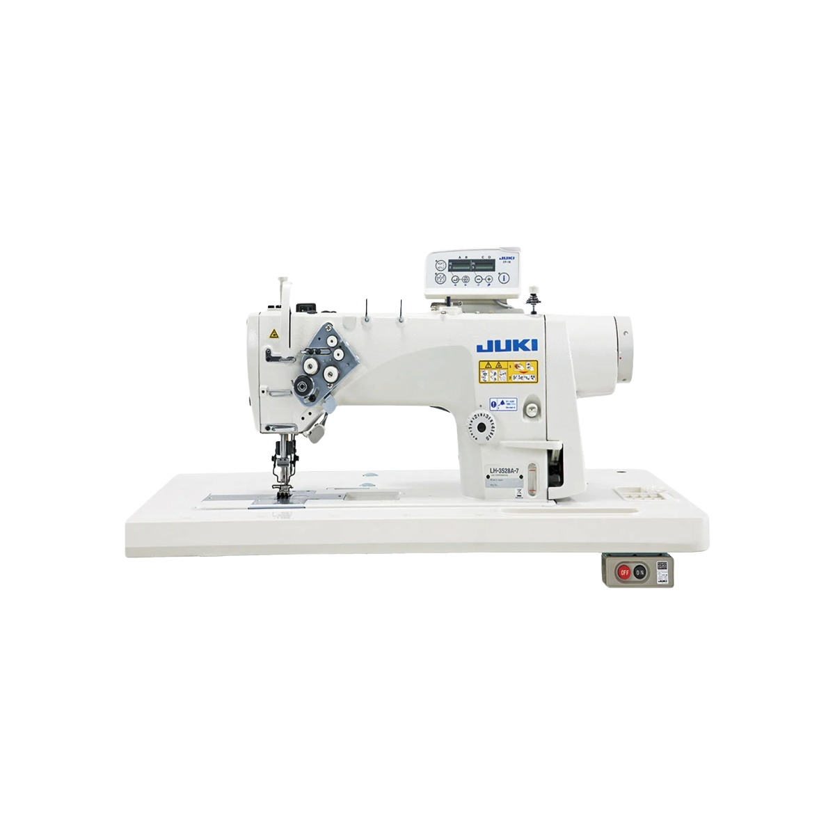 La JUKI LH-3568A è una macchina industriale lineare a 2 aghi con trasporto superiore (needle feed).