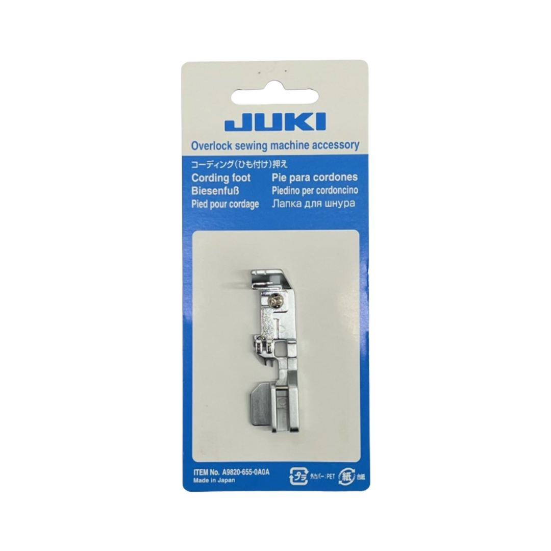 Il piedino per cordoncino Juki è un accessorio originale progettato esclusivamente per taglia e cuci famiglia di marchio Juki.