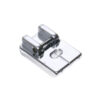 Il piedino è dotato di una canalina o guida centrale, pensata per accogliere il frullino durante la cucitura.