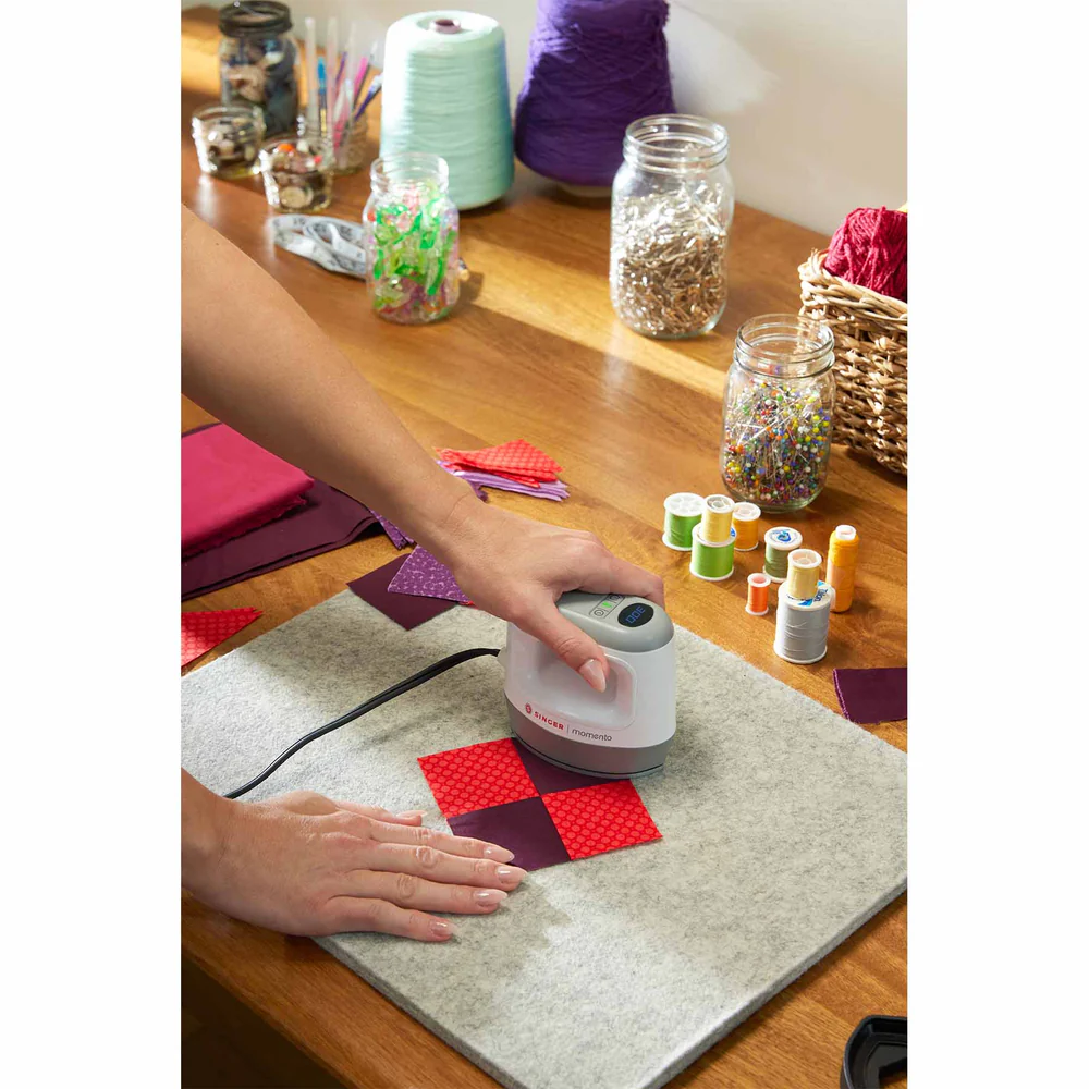 La Singer MOMENTO™ Mini Press è una pressa termica compatta e maneggevole, progettata per lavorare in abbinamento ai progetti realizzati con SINGER MOMENTO™.